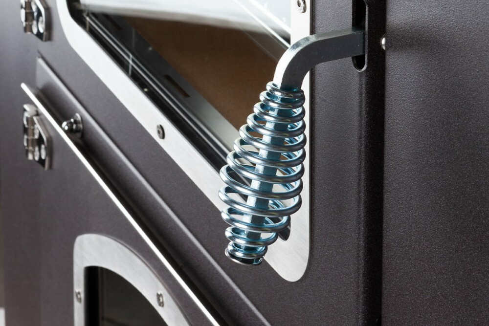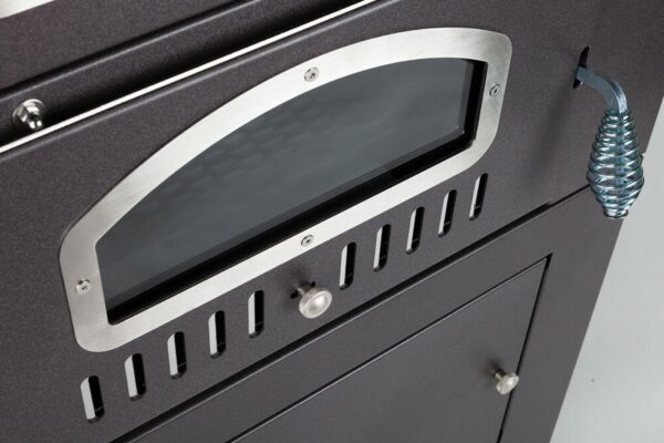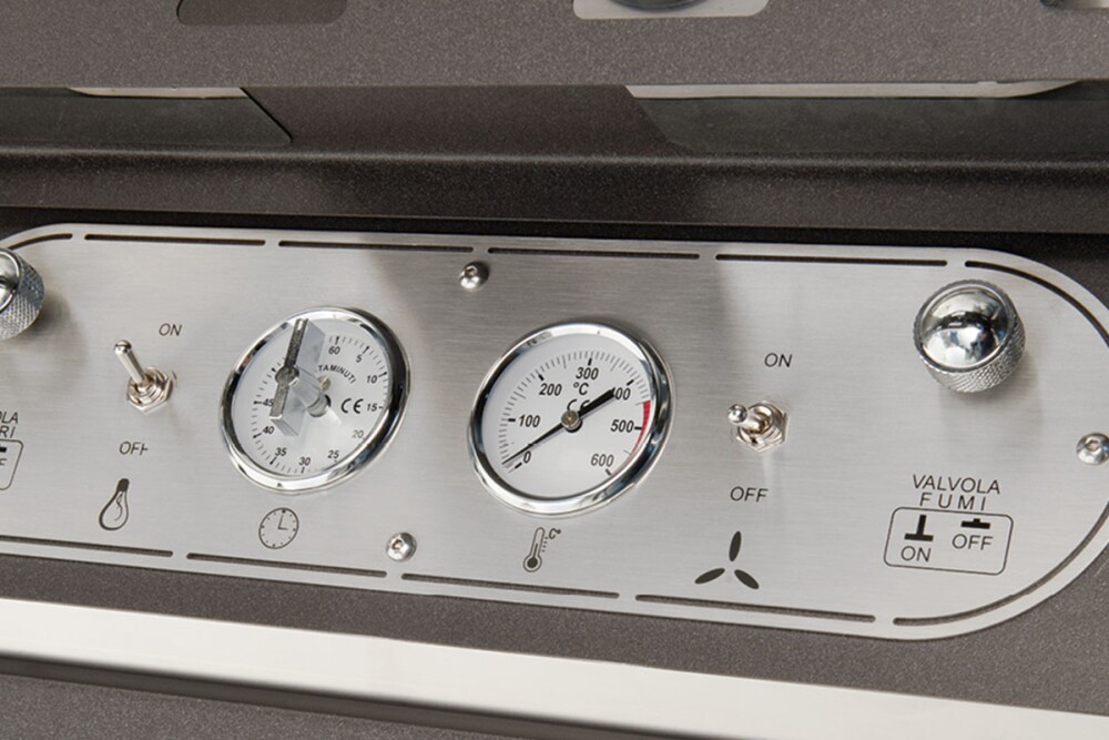 Auch zu Hause bringt das EFFE-Modell Klasse und Eleganz. Präzises und exklusives Design: mit abgerundetem Türglas, das es einzigartig und exklusiv macht. Ein Ofen, der durch die Genauigkeit der Details bis hin zu den Griffen, den Scharnieren und der Instrumentenkonsole mit praktischer Tür angenehm überrascht.