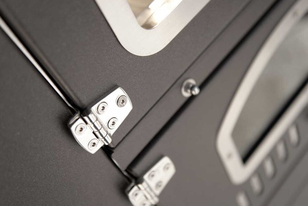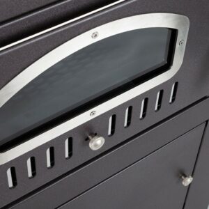 Auch zu Hause bringt das EFFE-Modell Klasse und Eleganz. Präzises und exklusives Design: mit abgerundetem Türglas, das es einzigartig und exklusiv macht. Ein Ofen, der durch die Genauigkeit der Details bis hin zu den Griffen, den Scharnieren und der Instrumentenkonsole mit praktischer Tür angenehm überrascht.