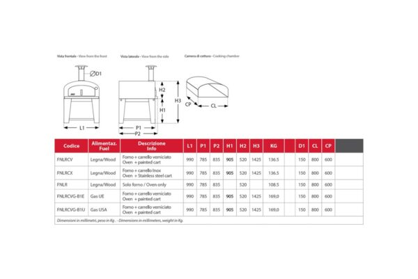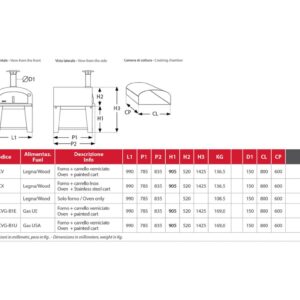 Ein großer Ofen, ideal für die Familie. Einschalten und Erhitzen in 20 Minuten, dann nur noch 2 Minuten, um eine außergewöhnliche Pizza zuzubereiten. Es ist auch möglich, es mit einem speziellen Küchenwagen zu erwerben.