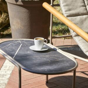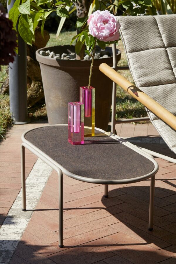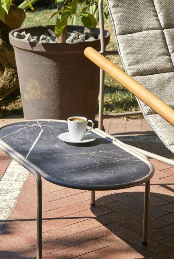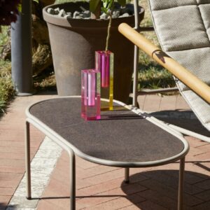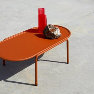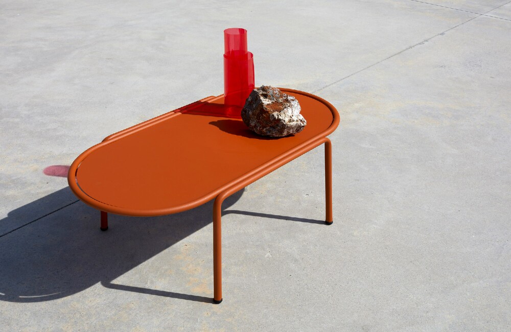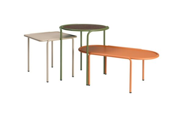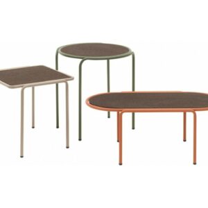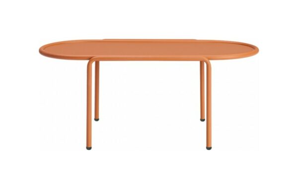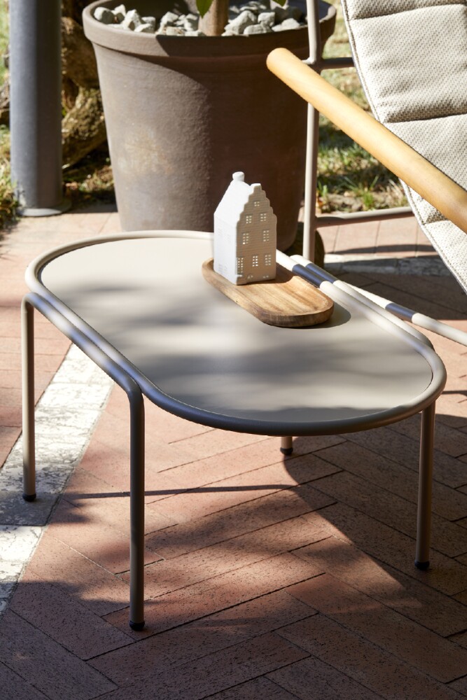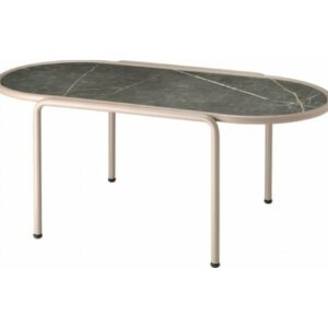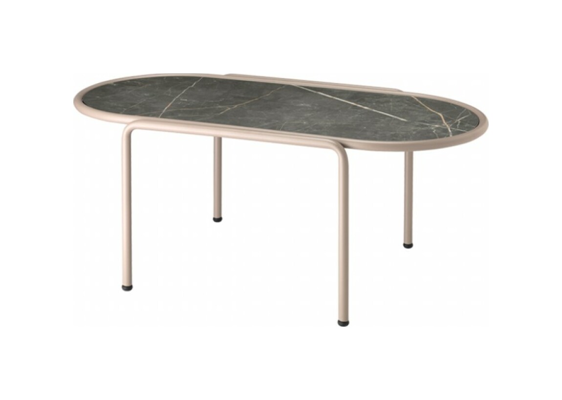 Der ovale Couchtisch DRESS CODE von SCAB verfügt über eine 4-beinige lackierte Stahlrohrstruktur, die in den Farben Leinen, Taubengrau, Anthrazit, Terrakotta, Luftwaffenblau und Olivgrün erhältlich ist.