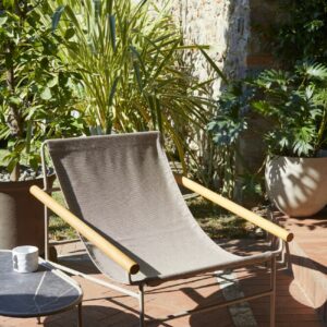 Er ist mit praktischen Holzarmlehnen mit einem Durchmesser von 40 mm ausgestattet.