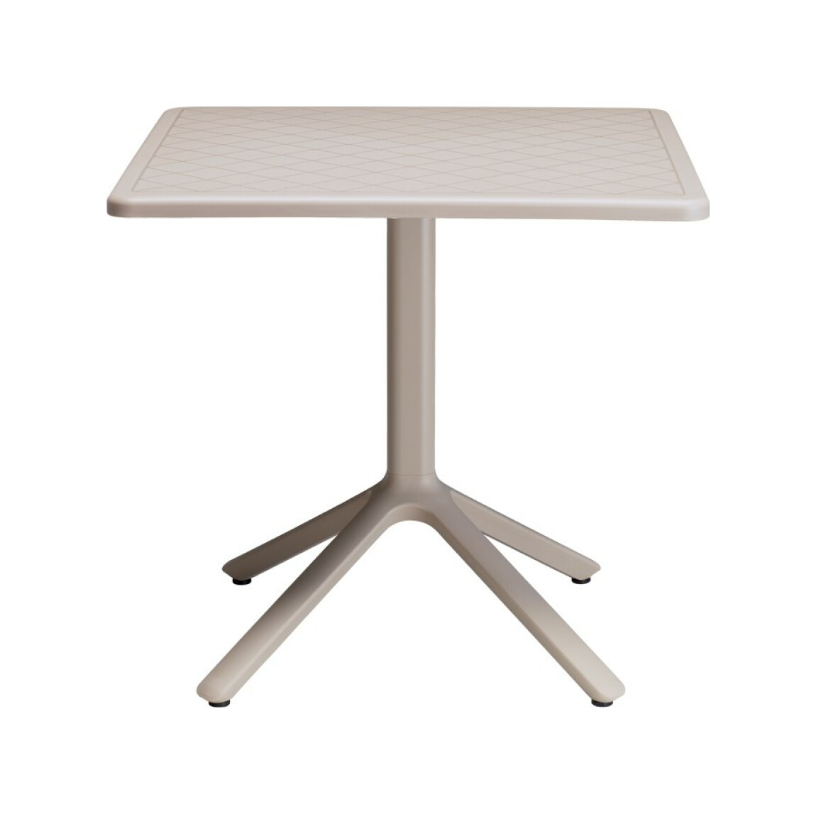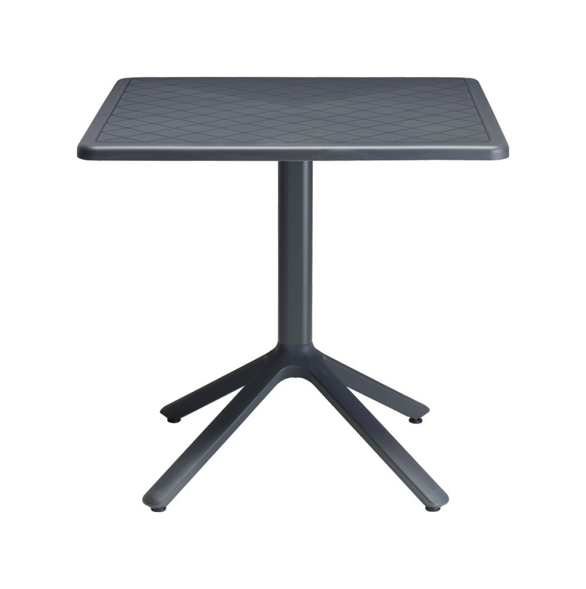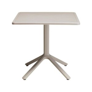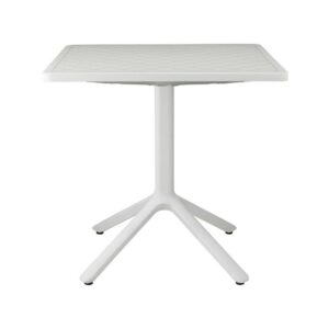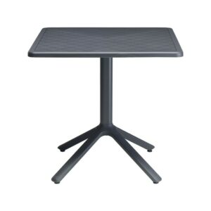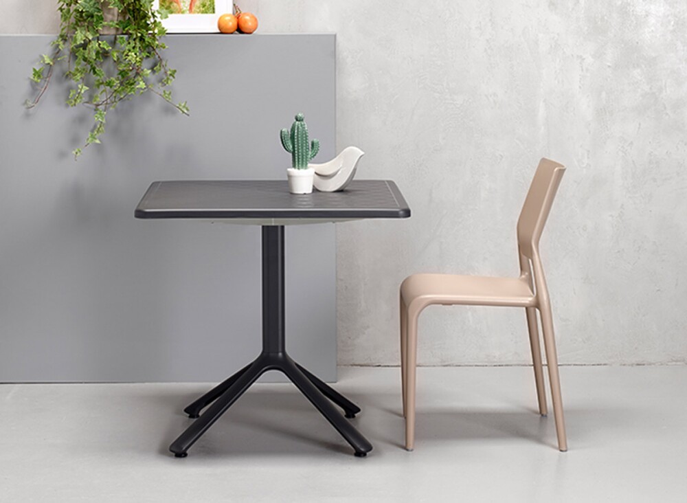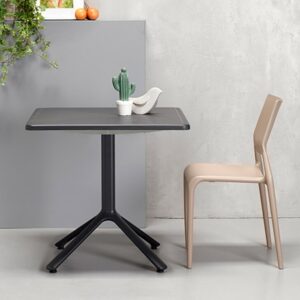 Der feste ECO- Tisch von SCAB ist mit einer zentralen quadratischen Säule aus lackiertem Aluminium mit abgerundeten Ecken ausgestattet, die maximale Stabilität und Leichtigkeit garantiert.