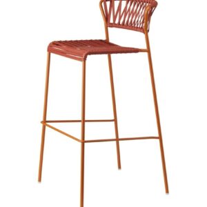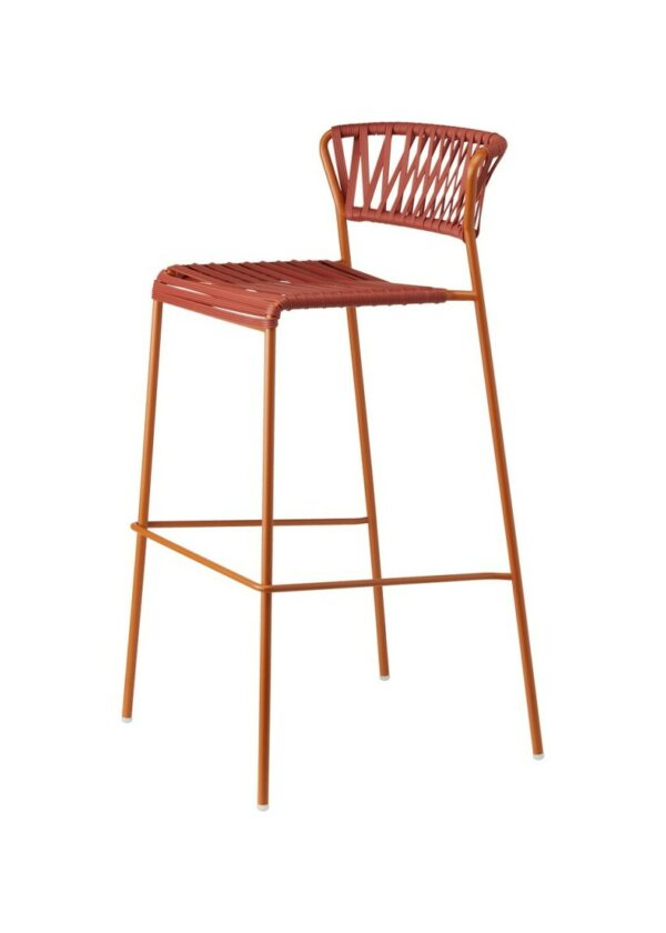 Der LISA CLUB Hocker von SCAB hat eine 4-Bein-Struktur aus verzinktem und lackiertem Stahlrohr mit einem Durchmesser von 16 mm, erhältlich in verschiedenen Farben.