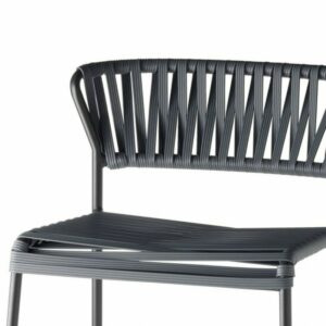 Sitzfläche und Rückenlehne bestehen aus der Verflechtung vieler PVC-Fäden mit einem Nylonkern.