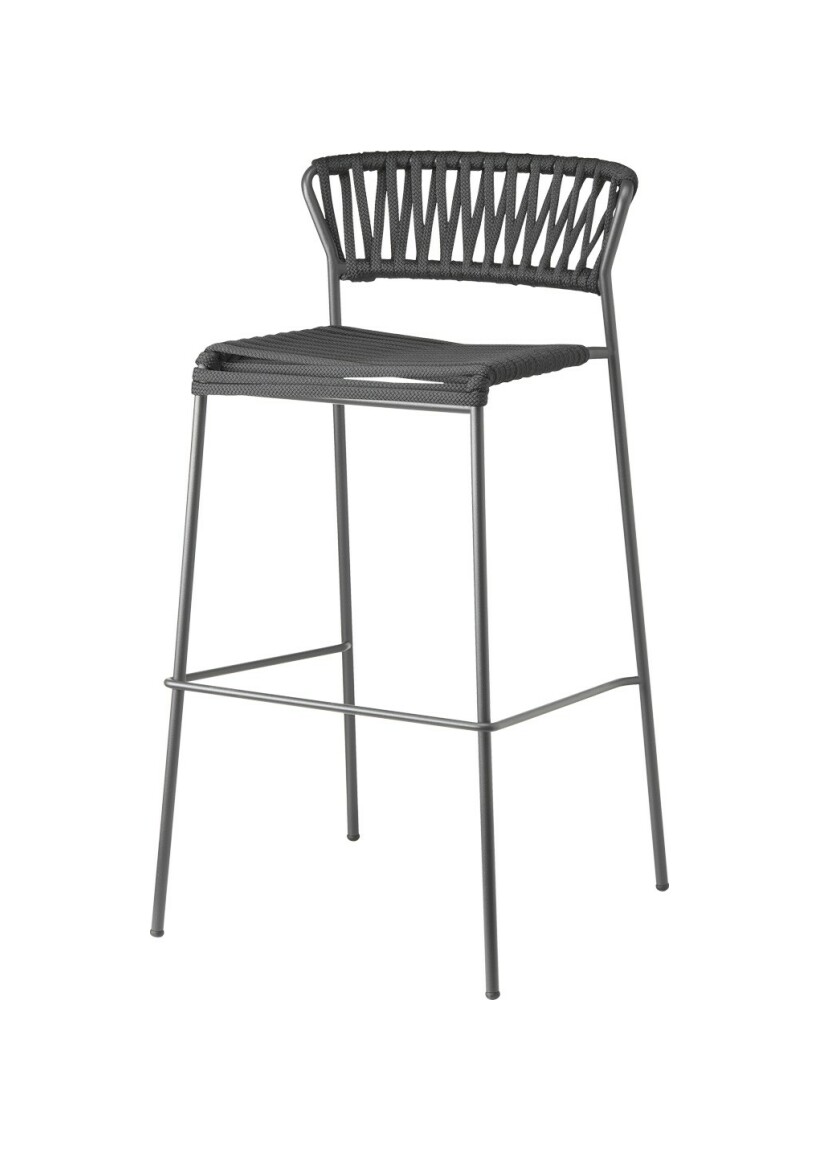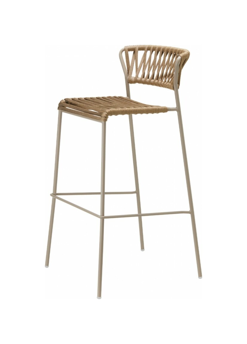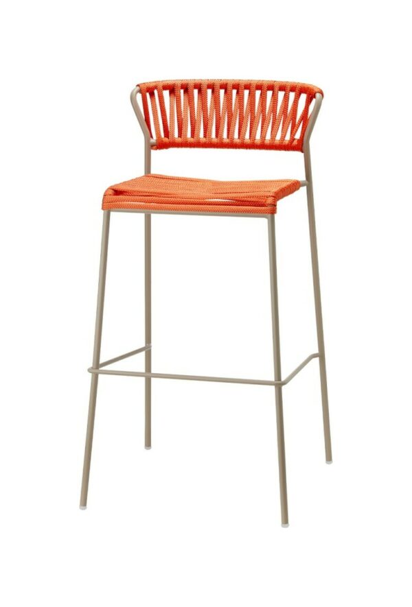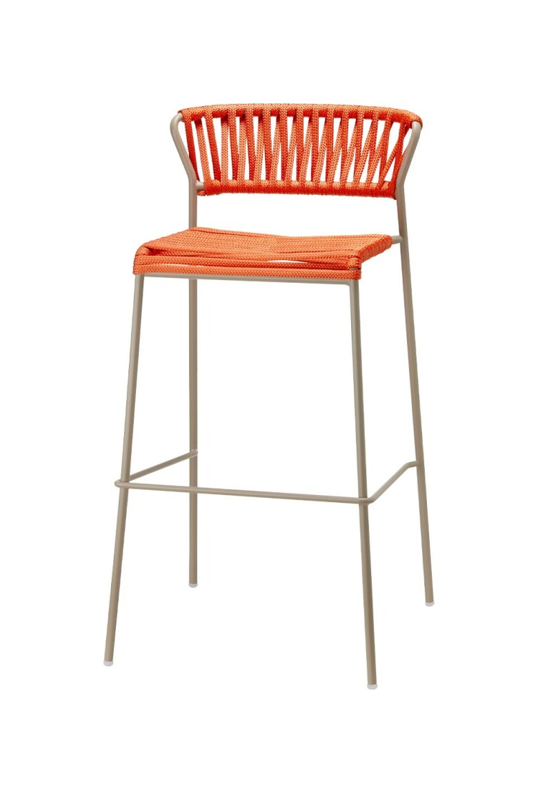 Der LISA FILÒ Hocker von SCAB hat eine 4-Bein-Struktur aus verzinktem und lackiertem Stahlrohr mit einem Durchmesser von 16 mm, erhältlich in verschiedenen Nuancen.