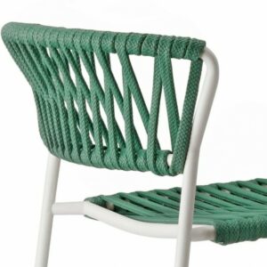 Der Sitz und die Rückenlehne bestehen aus der Verflechtung zahlreicher nautischer Seilstränge.