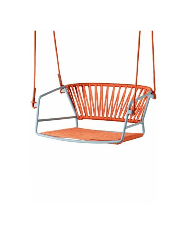 Der Sitz und die Rückenlehne bestehen aus der Verflechtung vieler nautischer Seilfäden und sind in den Farben Silber, Mint oder Orange erhältlich.