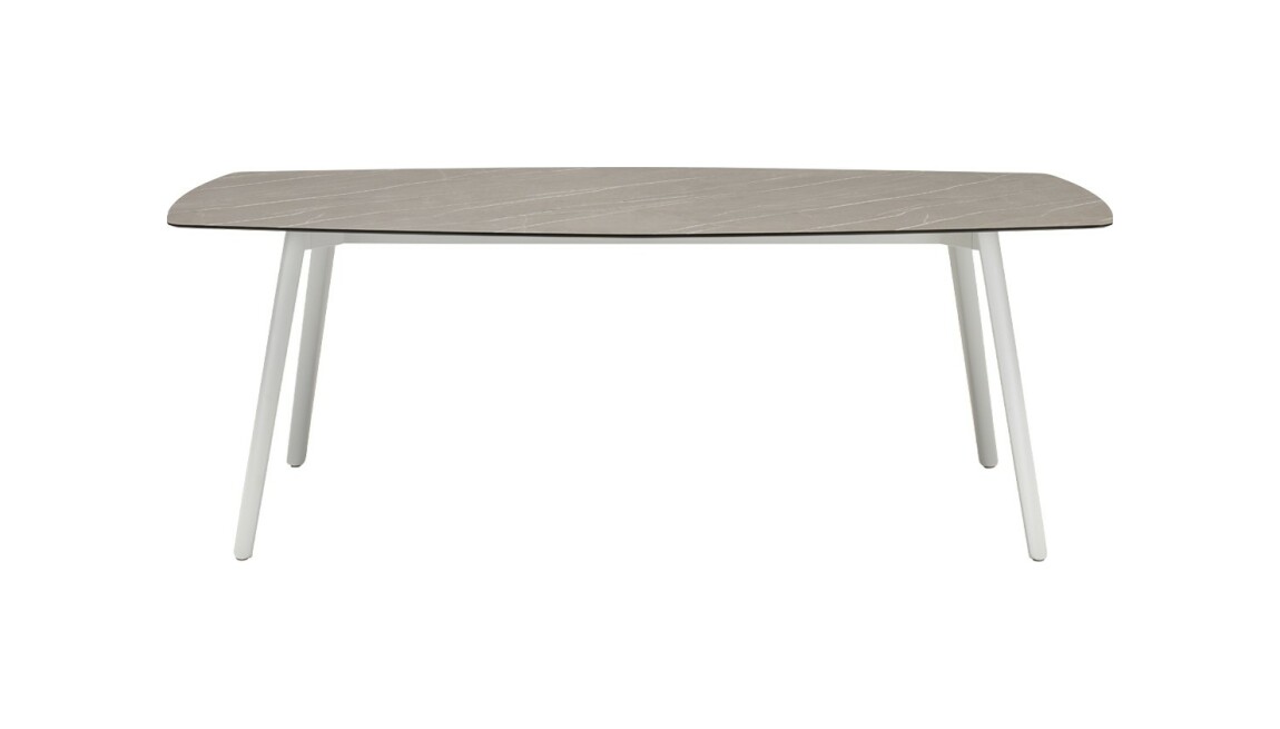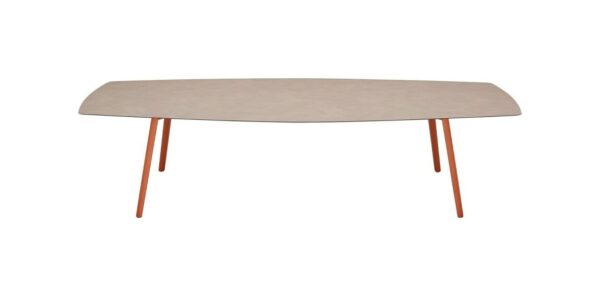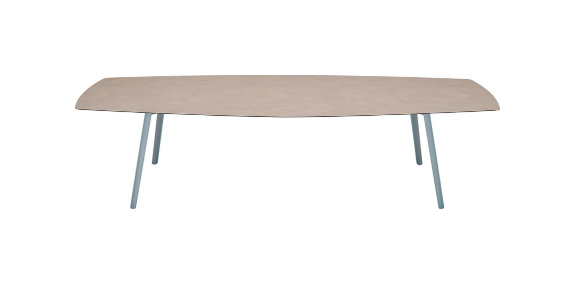 Der SQUID- Tisch von SCAB hat eine Metallstruktur mit Beinen aus Aluminiumdruckguss und ist in den Farben Weiß, Taubengrau, Anthrazit, Schwarz, Luftwaffenblau und Terrakotta erhältlich.