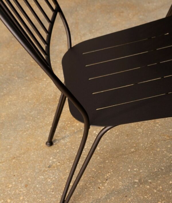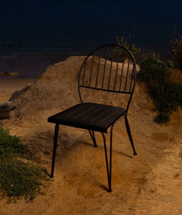 Ariete von Unopiù ist ein Stuhl mit zeitgenössischem Design , der die primäre Geometrie des Kreises als besonderes Merkmal hervorhebt, um die schmiedeeiserne Verarbeitung in einem zeitgenössischen Stil neu zu interpretieren.
