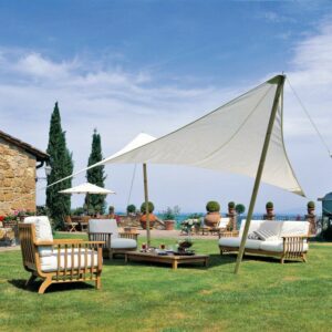 Manta von Unopiù ist ein Designer-Sonnenschutzbezug, der sich ideal dafür eignet, heiße Sommertage im Freien zu beschatten und die Außenumgebung in vollen Zügen zu genießen.