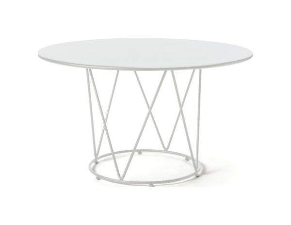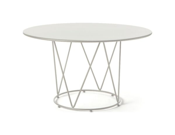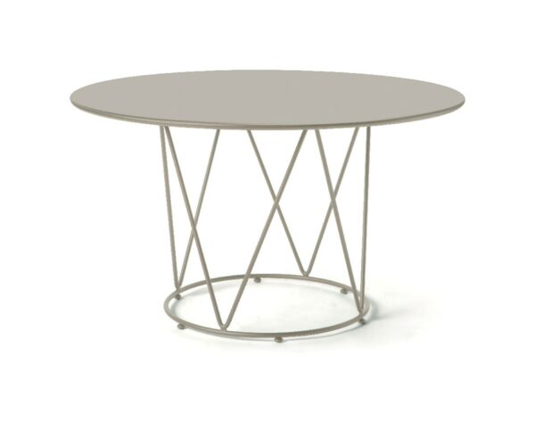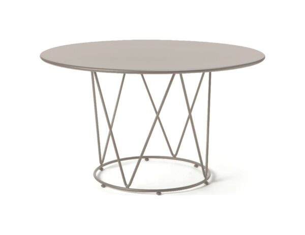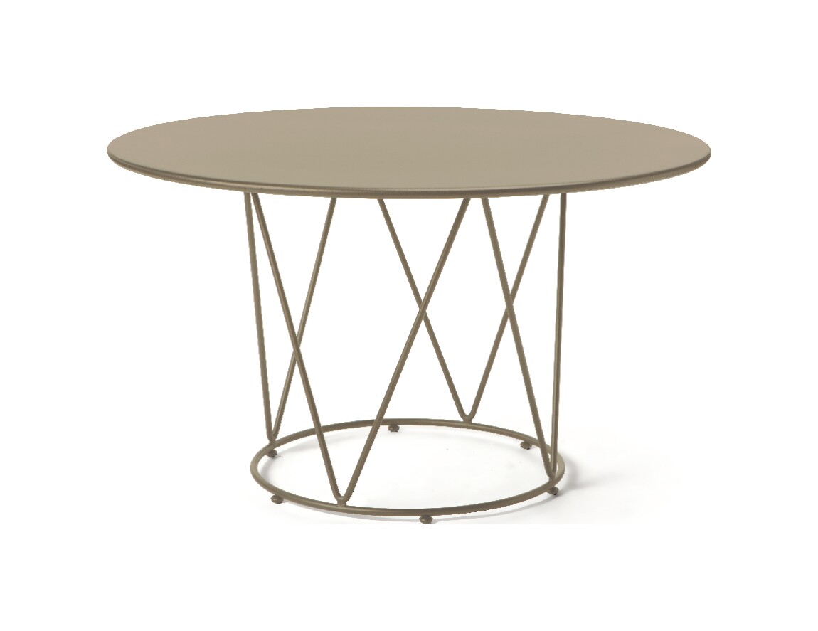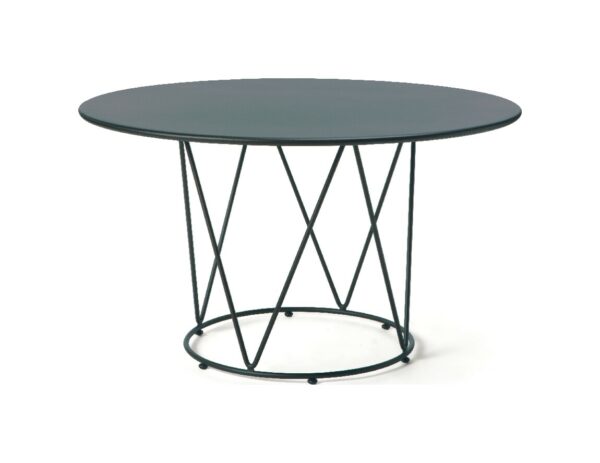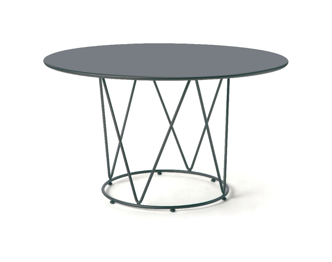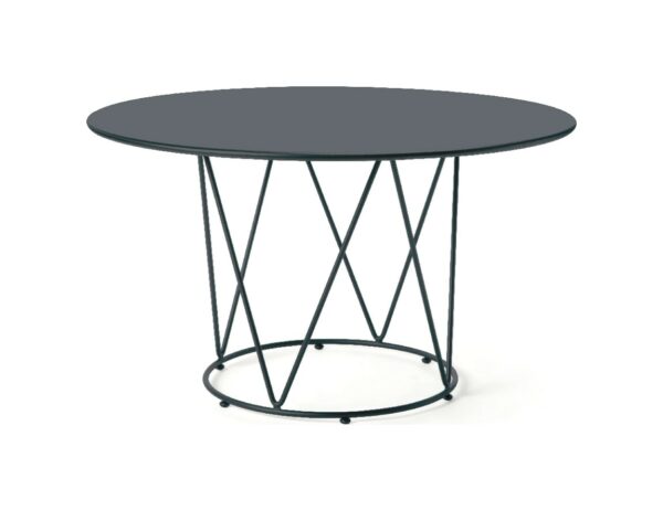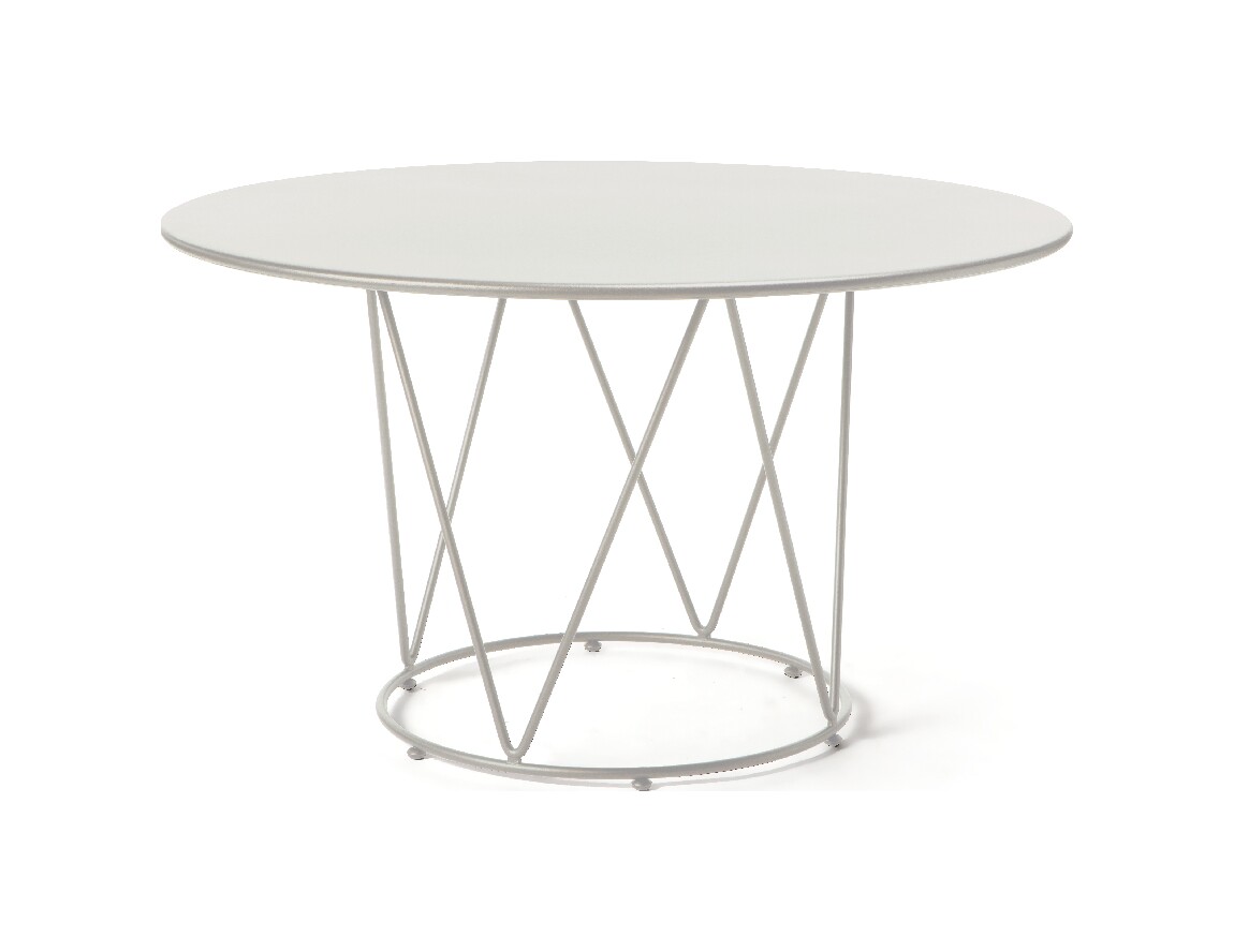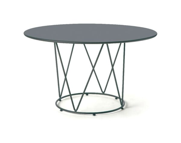VERMOBIL DAISY DE650/1100/1300/1450 ist ein runder Tisch aus lackiertem Metall. Die Struktur ist durch eine Verzinkungsbehandlung geschützt, korrosionsbeständig und wetterfest. Die Lackierung der Struktur erfolgt mit duroplastischen Polyesterpulvern von Qualicoat.