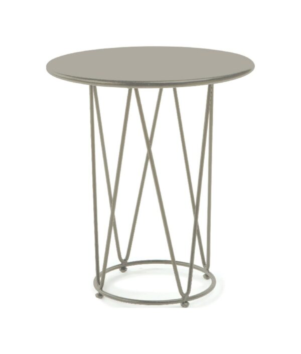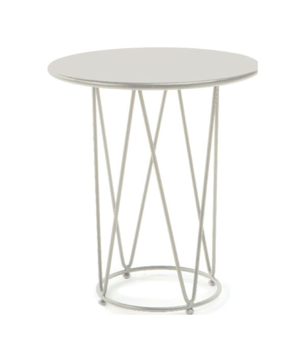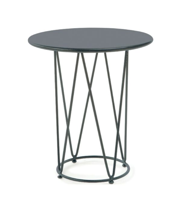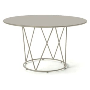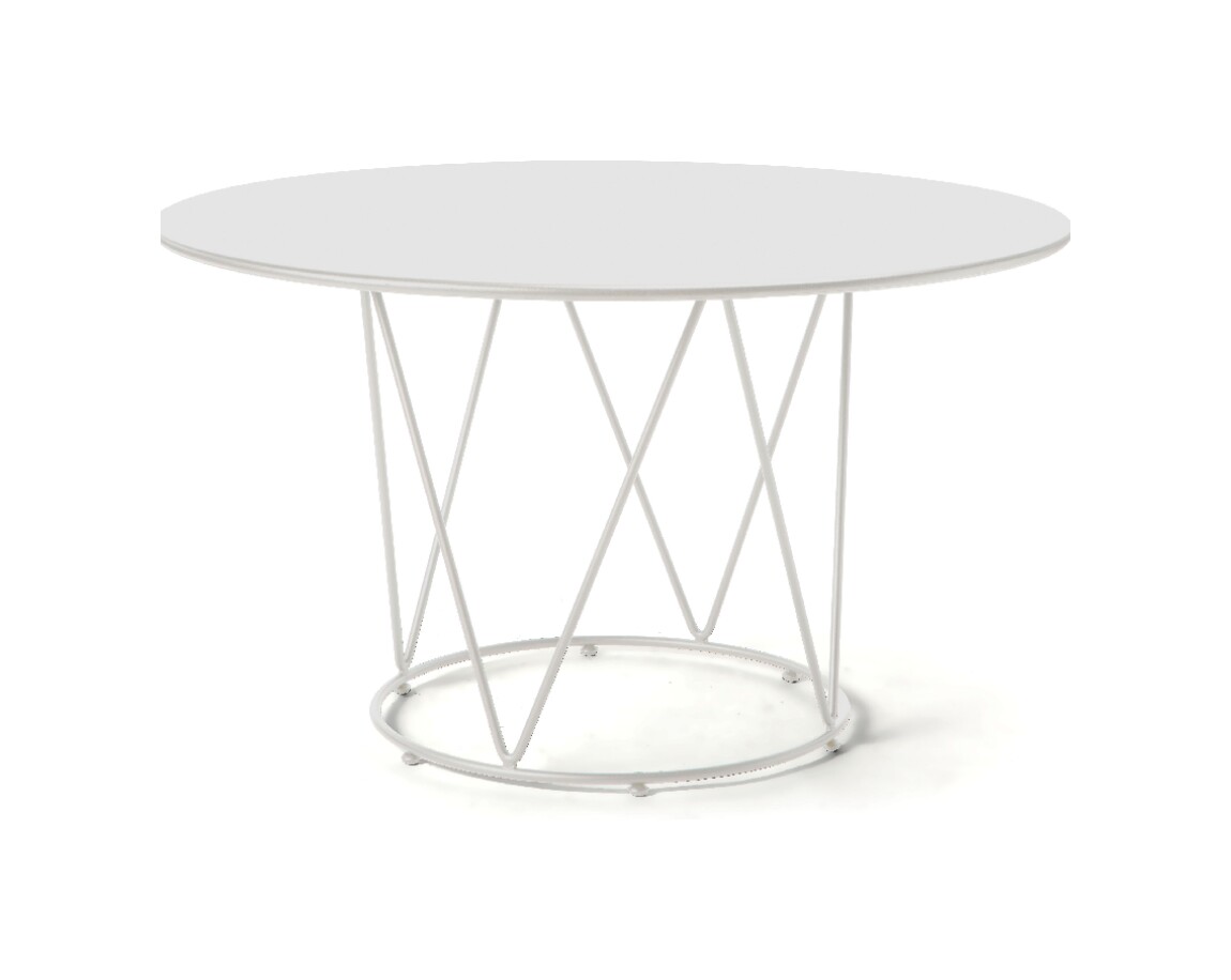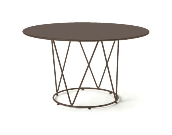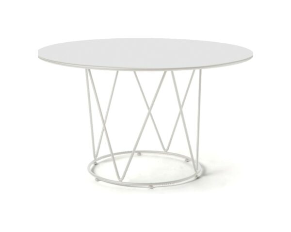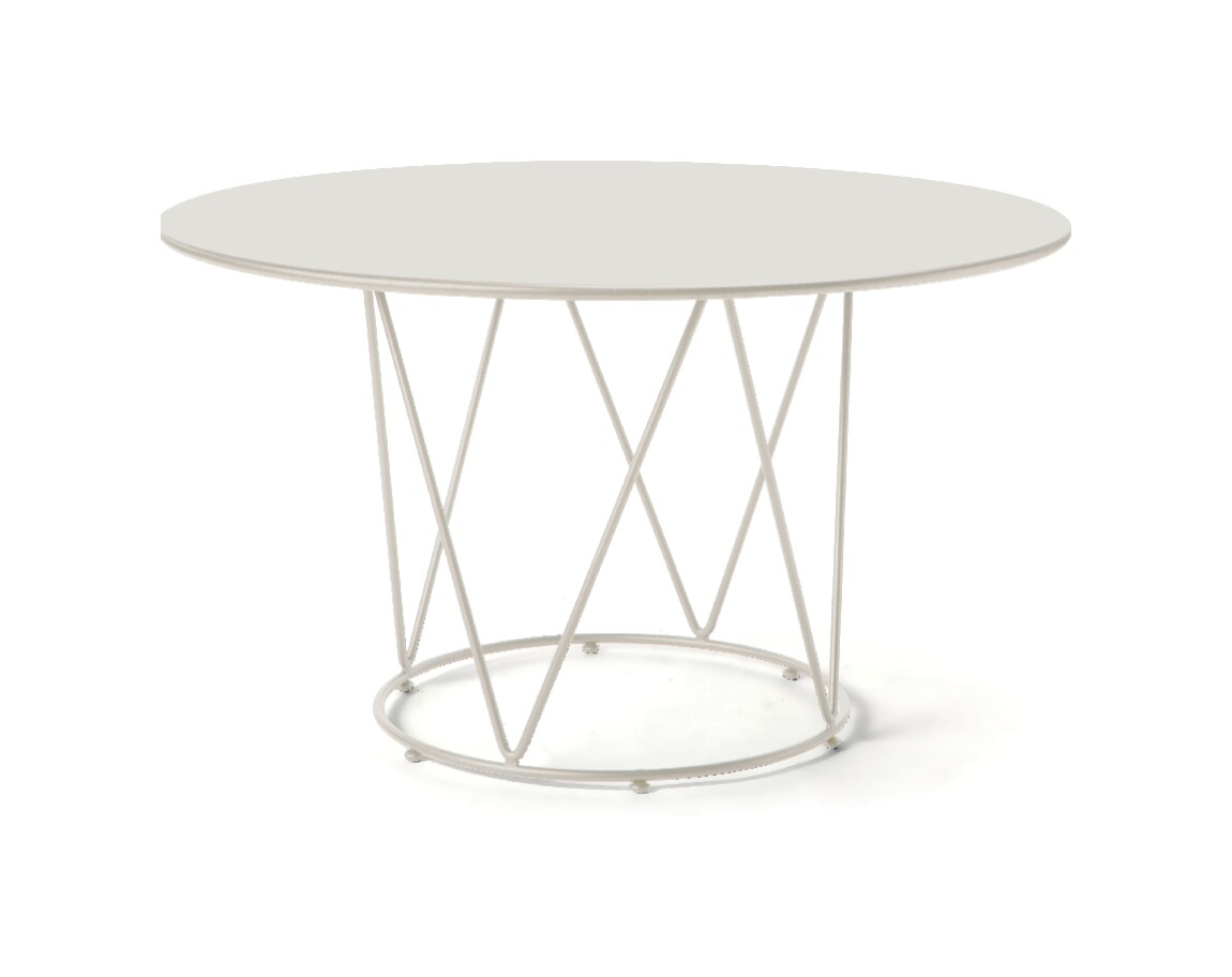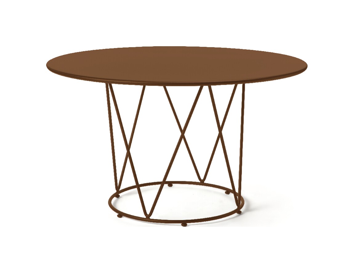 VERMOBIL DAISY DE650/1100/1300/1450 ist ein runder Tisch aus lackiertem Metall. Die Struktur ist durch eine Verzinkungsbehandlung geschützt, korrosionsbeständig und wetterfest. Die Lackierung der Struktur erfolgt mit duroplastischen Polyesterpulvern von Qualicoat.