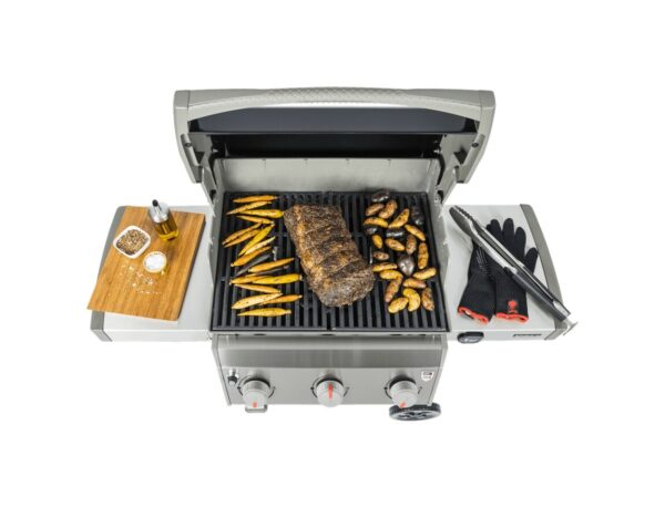 Werden Sie zum Grillmeister mit dem Spirit II E-310 GBS Gasgrill. Dieser Grill mit drei Brennern verfügt über einen geräumigen Kochbereich und praktische Seitenablagen zum Servieren von Geschirr und Haken zum Aufhängen von Zangen und Pfannenwendern. Mit dem leistungsstarken GS4-Kochsystem und der iGrill-Kompatibilität werden Sie im Handumdrehen zum König des Grillens.